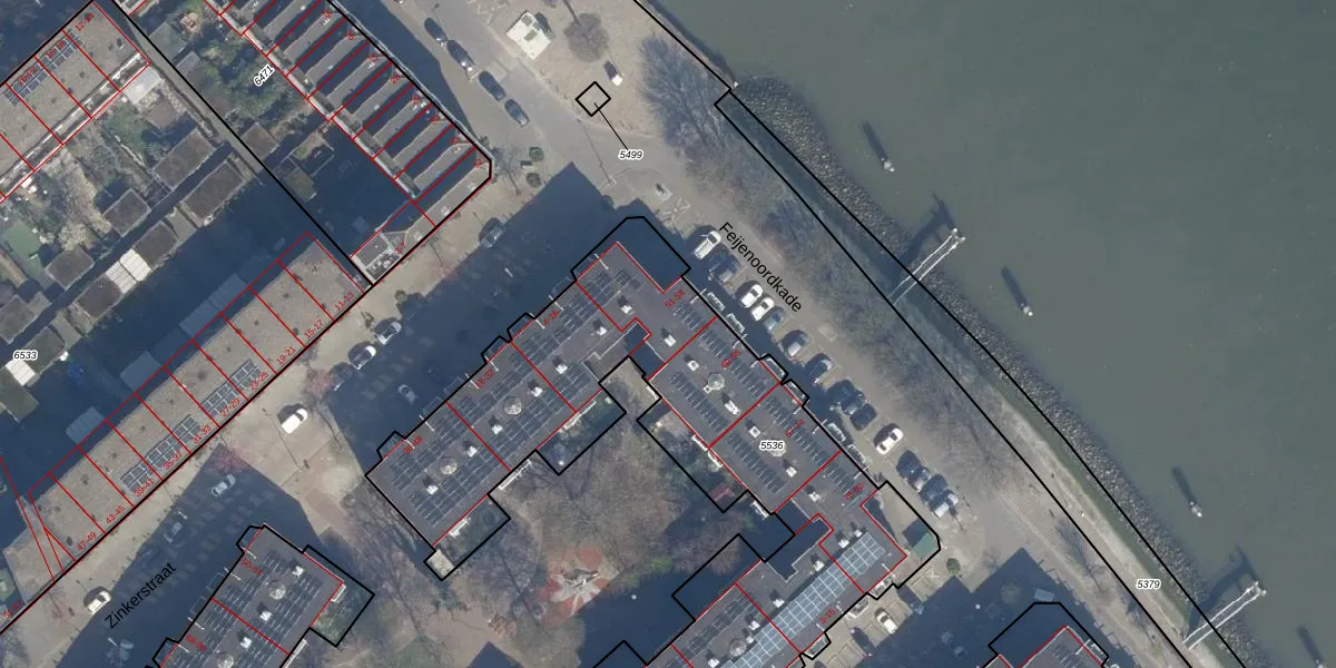 Feijenoordkade 56 is gelegen op kadastraal perceel RTD05Q5536. Deze kadastrale aanduiding is uniek en wordt gebruikt door het Kadaster om eigendomsrechten en andere zakelijke rechten vast te leggen. Het perceel maakt onderdeel uit van de kadastrale gemeente Rotterdam.