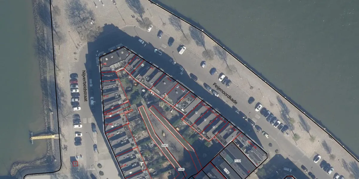 Feijenoordkade 9 is gelegen op kadastraal perceel RTD05Q6581. Deze kadastrale aanduiding is uniek en wordt gebruikt door het Kadaster om eigendomsrechten en andere zakelijke rechten vast te leggen. Het perceel maakt onderdeel uit van de kadastrale gemeente Rotterdam.