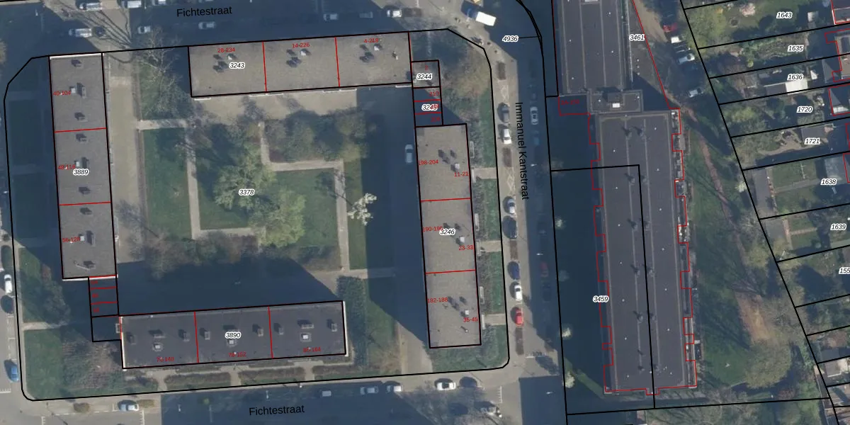 Fichtestraat 196 is gelegen op kadastraal perceel ISM01C3246. Deze kadastrale aanduiding is uniek en wordt gebruikt door het Kadaster om eigendomsrechten en andere zakelijke rechten vast te leggen. Het perceel maakt onderdeel uit van de kadastrale gemeente IJsselmonde.