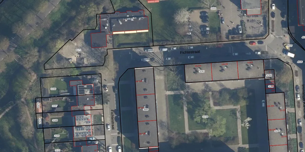 Het perceel waarop Fichtestraat 42 staat heeft een oppervlakte van 718 m². Dit is een groot perceel. De perceeloppervlakte wordt geregistreerd door het Kadaster. Gedetailleerde informatie over de maten van dit perceel kunt u vinden in het rapport Kadastrale kaart met maatvoering van Fichtestraat 42.