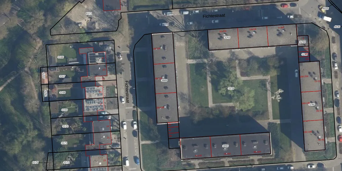 Het perceel waarop Fichtestraat 52 staat heeft een oppervlakte van 718 m². Dit is een groot perceel. De perceeloppervlakte wordt geregistreerd door het Kadaster. Gedetailleerde informatie over de maten van dit perceel kunt u vinden in het rapport Kadastrale kaart met maatvoering van Fichtestraat 52.