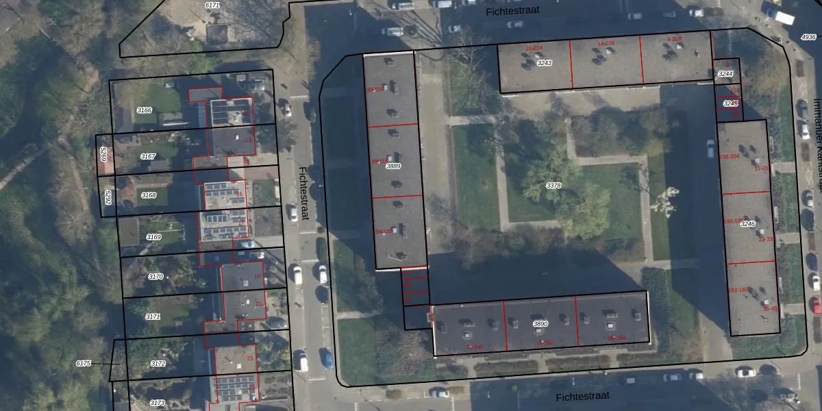 Het perceel waarop Fichtestraat 56 staat heeft een oppervlakte van 718 m². Dit is een groot perceel. De perceeloppervlakte wordt geregistreerd door het Kadaster. Gedetailleerde informatie over de maten van dit perceel kunt u vinden in het rapport Kadastrale kaart met maatvoering van Fichtestraat 56.