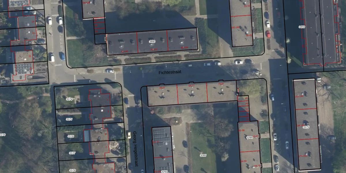 Het perceel waarop Fichtestraat 57 staat heeft een oppervlakte van 1327 m². Dit is een zeer groot perceel. De perceeloppervlakte wordt geregistreerd door het Kadaster. Gedetailleerde informatie over de maten van dit perceel kunt u vinden in het rapport Kadastrale kaart met maatvoering van Fichtestraat 57.