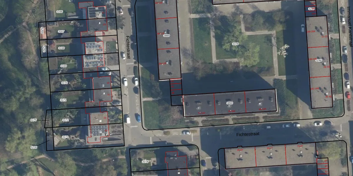 Het perceel waarop Fichtestraat 66 staat heeft een oppervlakte van 718 m². Dit is een groot perceel. De perceeloppervlakte wordt geregistreerd door het Kadaster. Gedetailleerde informatie over de maten van dit perceel kunt u vinden in het rapport Kadastrale kaart met maatvoering van Fichtestraat 66.