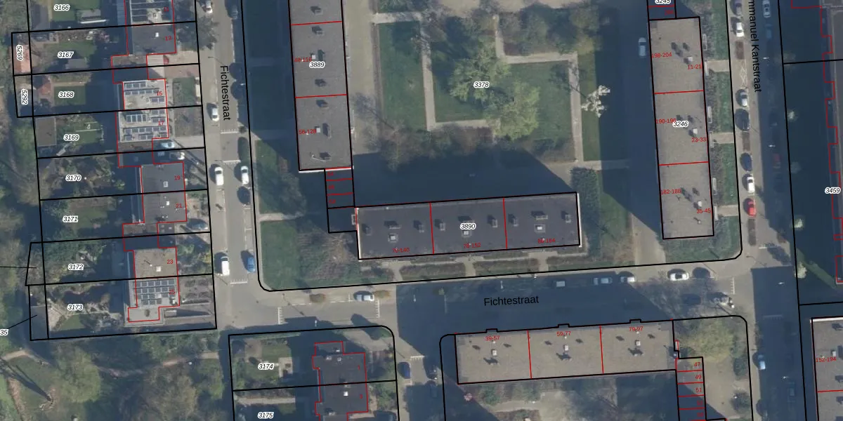 Het perceel waarop Fichtestraat 76 staat heeft een oppervlakte van 696 m². Dit is een groot perceel. De perceeloppervlakte wordt geregistreerd door het Kadaster. Gedetailleerde informatie over de maten van dit perceel kunt u vinden in het rapport Kadastrale kaart met maatvoering van Fichtestraat 76.