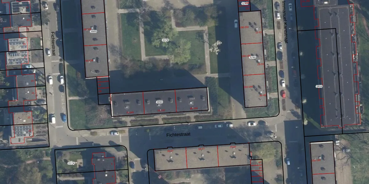 Fichtestraat 88 is gelegen op kadastraal perceel ISM01C3890. Deze kadastrale aanduiding is uniek en wordt gebruikt door het Kadaster om eigendomsrechten en andere zakelijke rechten vast te leggen. Het perceel maakt onderdeel uit van de kadastrale gemeente IJsselmonde.