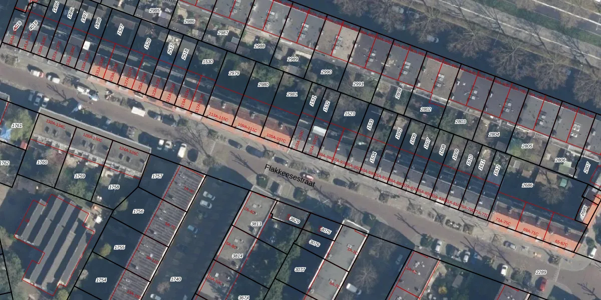 Flakkeesestraat 103-B is gelegen op kadastraal perceel CLS00H1531. Deze kadastrale aanduiding is uniek en wordt gebruikt door het Kadaster om eigendomsrechten en andere zakelijke rechten vast te leggen. Het perceel maakt onderdeel uit van de kadastrale gemeente Charlois.