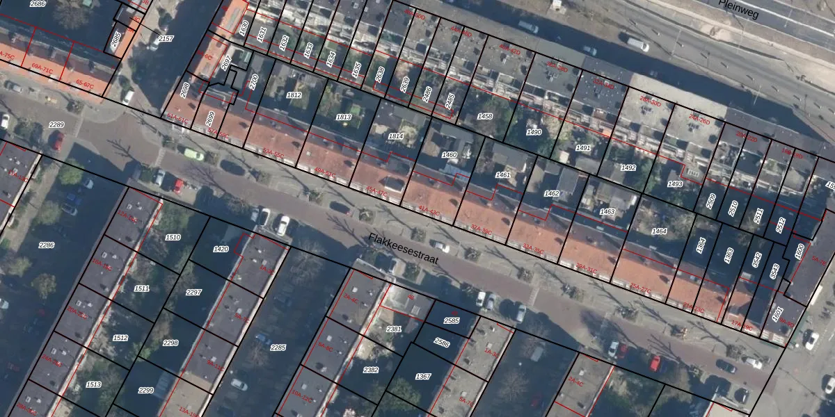 Flakkeesestraat 43-A is gelegen op kadastraal perceel CLS00H1460. Deze kadastrale aanduiding is uniek en wordt gebruikt door het Kadaster om eigendomsrechten en andere zakelijke rechten vast te leggen. Het perceel maakt onderdeel uit van de kadastrale gemeente Charlois.