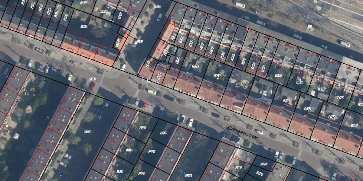 Flakkeesestraat 55-B is gelegen op kadastraal perceel CLS00H1812. Deze kadastrale aanduiding is uniek en wordt gebruikt door het Kadaster om eigendomsrechten en andere zakelijke rechten vast te leggen. Het perceel maakt onderdeel uit van de kadastrale gemeente Charlois.