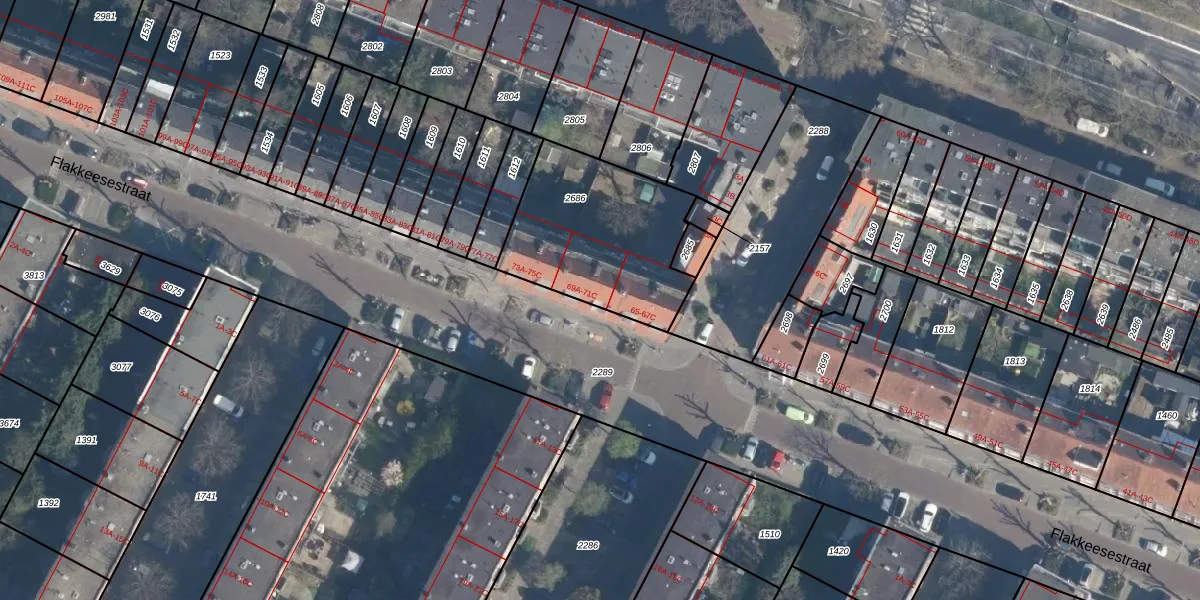 Flakkeesestraat 69-A is gelegen op kadastraal perceel CLS00H2686. Deze kadastrale aanduiding is uniek en wordt gebruikt door het Kadaster om eigendomsrechten en andere zakelijke rechten vast te leggen. Het perceel maakt onderdeel uit van de kadastrale gemeente Charlois.