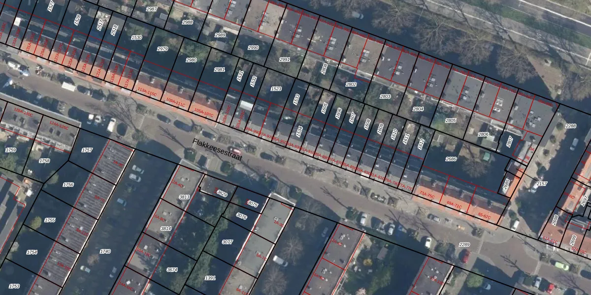 Flakkeesestraat 93-B is gelegen op kadastraal perceel CLS00H1534. Deze kadastrale aanduiding is uniek en wordt gebruikt door het Kadaster om eigendomsrechten en andere zakelijke rechten vast te leggen. Het perceel maakt onderdeel uit van de kadastrale gemeente Charlois.