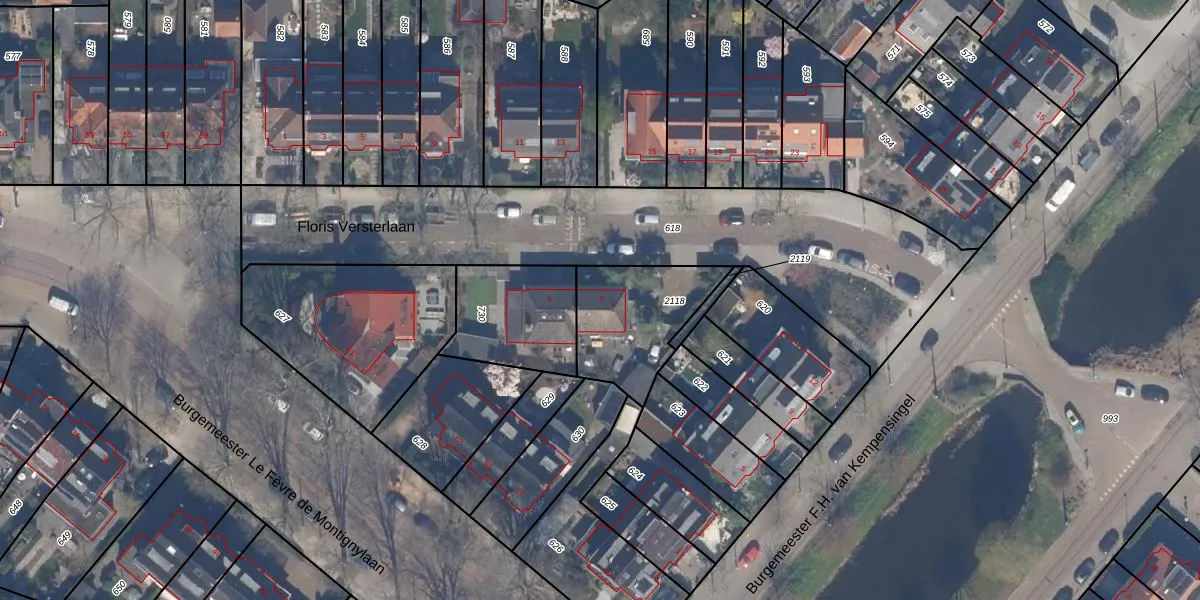 Floris Versterlaan 8 is gelegen op kadastraal perceel HLG03D2118. Deze kadastrale aanduiding is uniek en wordt gebruikt door het Kadaster om eigendomsrechten en andere zakelijke rechten vast te leggen. Het perceel maakt onderdeel uit van de kadastrale gemeente Hillegersberg.