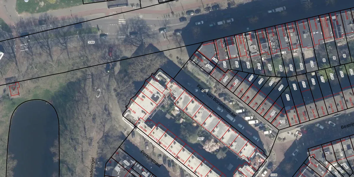Het perceel waarop Frank van Borselenstraat 20-A staat heeft een oppervlakte van 2714 m². Dit is een zeer groot perceel. De perceeloppervlakte wordt geregistreerd door het Kadaster. Gedetailleerde informatie over de maten van dit perceel kunt u vinden in het rapport Kadastrale kaart met maatvoering van Frank van Borselenstraat 20-A.