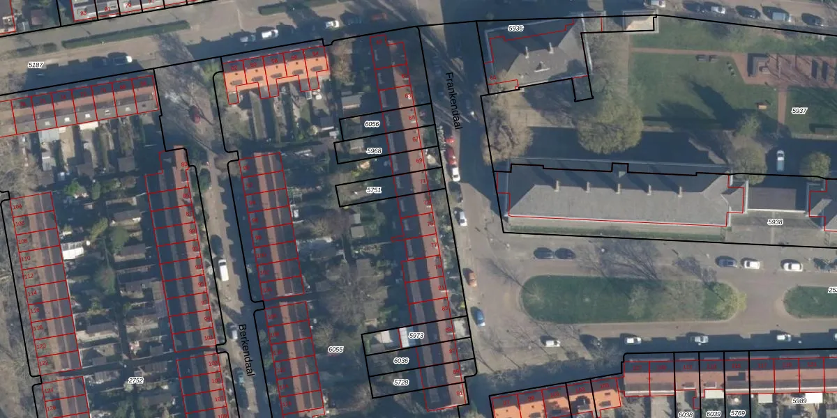Het perceel waarop Frankendaal 73 staat heeft een oppervlakte van 3932 m². Dit is een zeer groot perceel. De perceeloppervlakte wordt geregistreerd door het Kadaster. Gedetailleerde informatie over de maten van dit perceel kunt u vinden in het rapport Kadastrale kaart met maatvoering van Frankendaal 73.