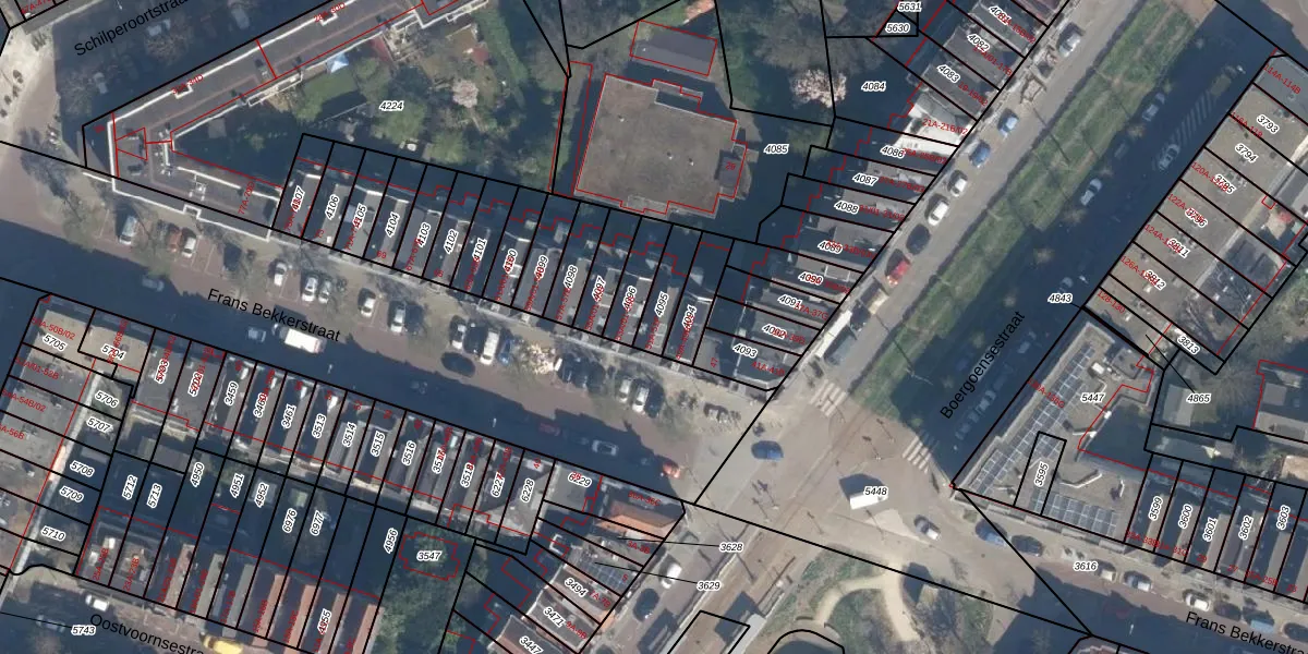 Frans Bekkerstraat 51-F is gelegen op kadastraal perceel CLS00E4095. Deze kadastrale aanduiding is uniek en wordt gebruikt door het Kadaster om eigendomsrechten en andere zakelijke rechten vast te leggen. Het perceel maakt onderdeel uit van de kadastrale gemeente Charlois.