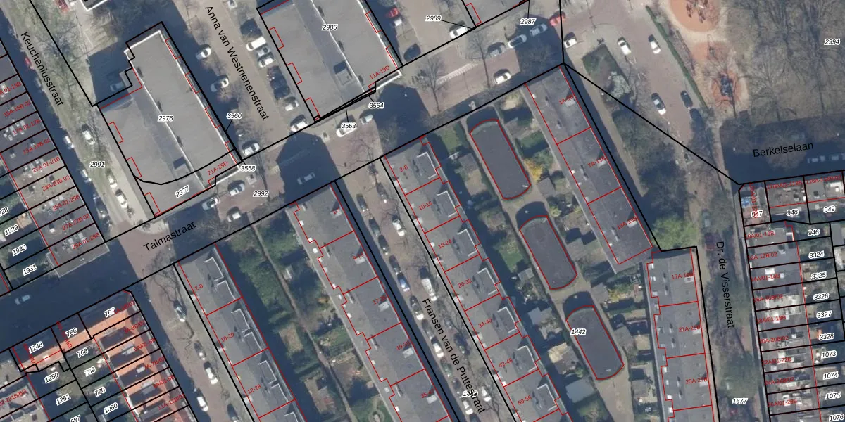Fransen van de Puttestraat 16 is gelegen op kadastraal perceel RTD10AB1442. Deze kadastrale aanduiding is uniek en wordt gebruikt door het Kadaster om eigendomsrechten en andere zakelijke rechten vast te leggen. Het perceel maakt onderdeel uit van de kadastrale gemeente Rotterdam.