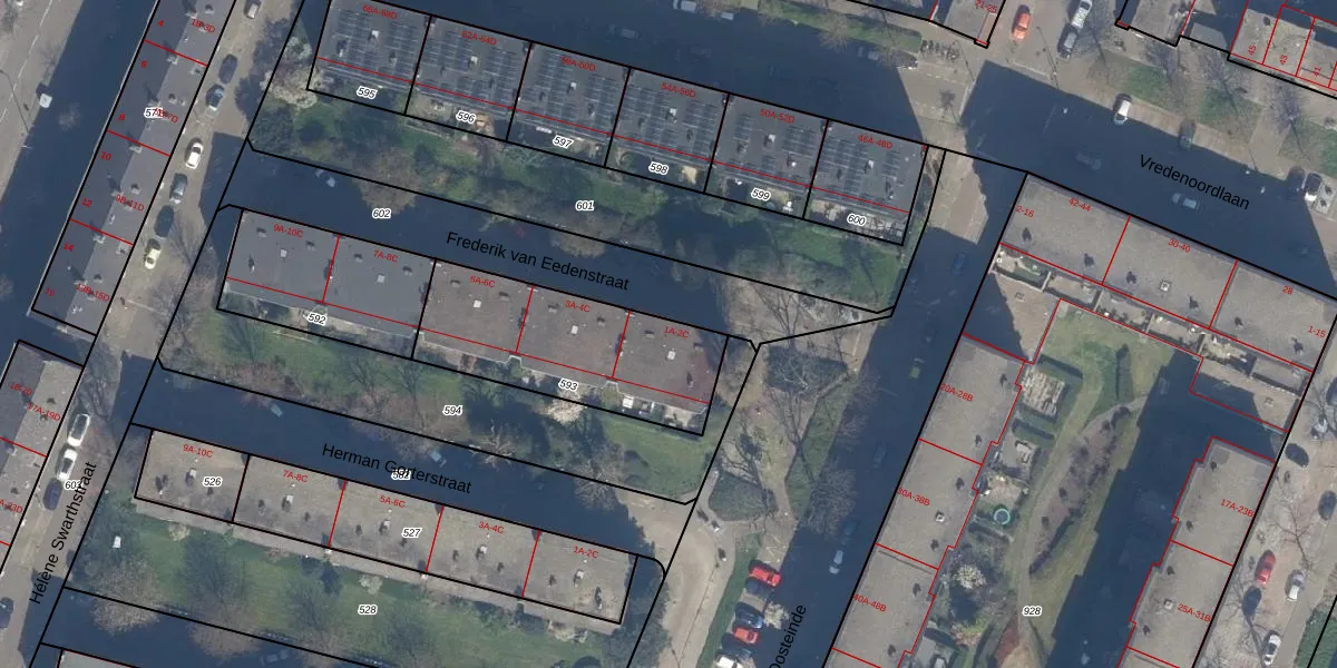 Het perceel waarop Frederik van Eedenstraat 2-B staat heeft een oppervlakte van 697 m². Dit is een groot perceel. De perceeloppervlakte wordt geregistreerd door het Kadaster. Gedetailleerde informatie over de maten van dit perceel kunt u vinden in het rapport Kadastrale kaart met maatvoering van Frederik van Eedenstraat 2-B.