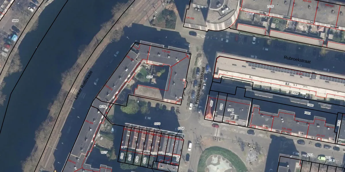 Het adres ligt op het perceel RTD07-R-8125, dat zich in de kadastrale gemeente Rotterdam bevindt. De gemiddelde perceeloppervlakte in de kadastrale gemeente Rotterdam is 506,86 m². Dit perceel is met zijn 1335 m² dus groter dan gemiddeld. Het grootste perceel in de kadastrale gemeente is 10,8 ha. Het kleinste perceel heeft een oppervlakte van 0 m². Op het perceel liggen in totaal 28 adressen. In de Basisregistratie Kadaster (BRK) werden de grenzen van het perceel geregistreerd op 03-02-2023.