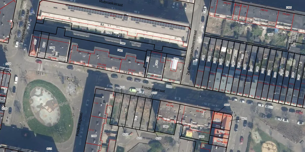 Frederikstraat 113 is gelegen op kadastraal perceel RTD07R7418. Deze kadastrale aanduiding is uniek en wordt gebruikt door het Kadaster om eigendomsrechten en andere zakelijke rechten vast te leggen. Het perceel maakt onderdeel uit van de kadastrale gemeente Rotterdam.