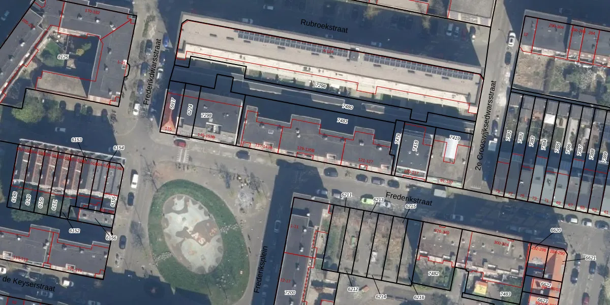 Het perceel waarop Frederikstraat 129 staat heeft een oppervlakte van 852 m². Dit is een groot perceel. De perceeloppervlakte wordt geregistreerd door het Kadaster. Gedetailleerde informatie over de maten van dit perceel kunt u vinden in het rapport Kadastrale kaart met maatvoering van Frederikstraat 129.
