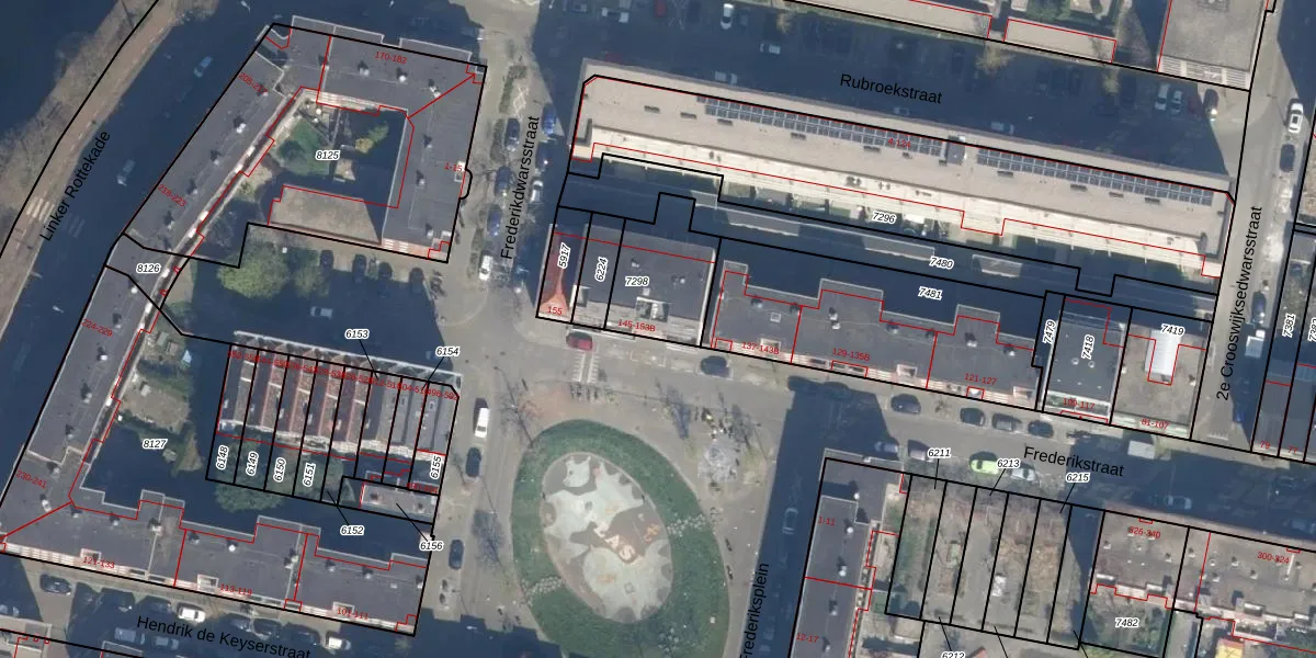 Het adres ligt op het perceel RTD07-R-7298, dat zich in de kadastrale gemeente Rotterdam bevindt. Het perceel is kleiner dan gemiddeld in Rotterdam. Het perceel is 279 m² groot, terwijl het gemiddelde ligt op 506,86 m². Het grootste perceel in de kadastrale gemeente is 10,8 ha. Het kleinste perceel heeft een oppervlakte van 0 m². Op het perceel liggen in totaal 10 adressen. De huidige grenzen van het perceel zijn digitaal in de Basisregistratie Kadaster (BRK) geregistreerd op 06-12-2002.