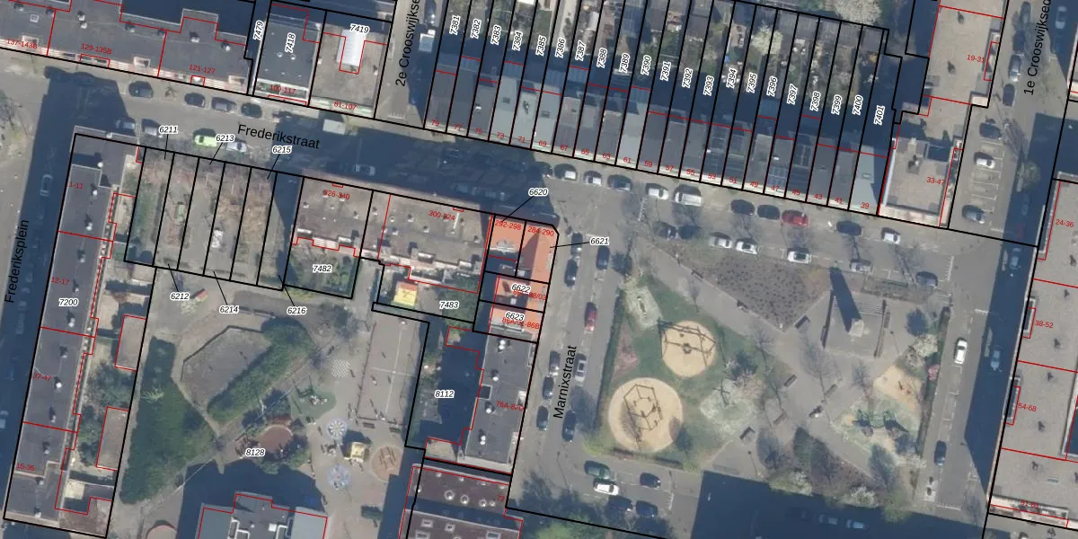 Het perceel waarop Frederikstraat 284 staat heeft een oppervlakte van 67 m². Dit is een klein perceel. De perceeloppervlakte wordt geregistreerd door het Kadaster. Gedetailleerde informatie over de maten van dit perceel kunt u vinden in het rapport Kadastrale kaart met maatvoering van Frederikstraat 284.