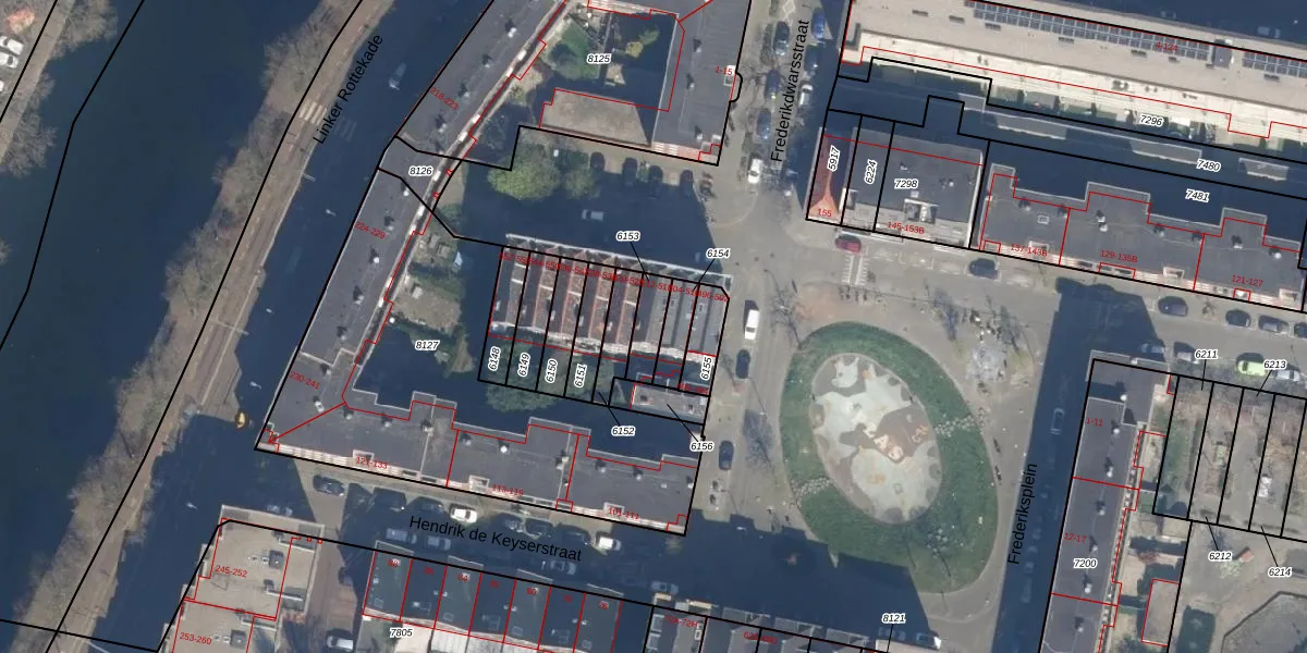 Frederikstraat 512 is gelegen op kadastraal perceel RTD07R6153. Deze kadastrale aanduiding is uniek en wordt gebruikt door het Kadaster om eigendomsrechten en andere zakelijke rechten vast te leggen. Het perceel maakt onderdeel uit van de kadastrale gemeente Rotterdam.