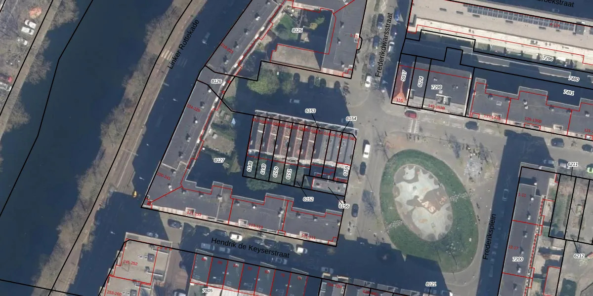 Frederikstraat 532 is gelegen op kadastraal perceel RTD07R6151. Deze kadastrale aanduiding is uniek en wordt gebruikt door het Kadaster om eigendomsrechten en andere zakelijke rechten vast te leggen. Het perceel maakt onderdeel uit van de kadastrale gemeente Rotterdam.