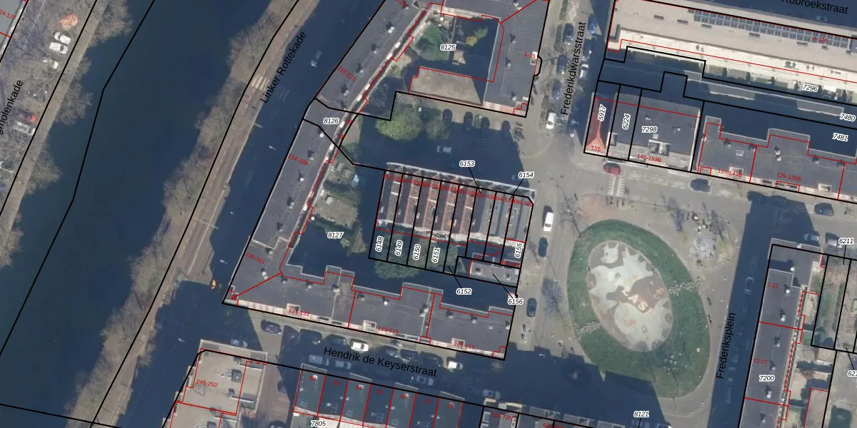 Het adres ligt op het perceel RTD07-R-6150, dat zich in de kadastrale gemeente Rotterdam bevindt. De gemiddelde perceelgrootte in Rotterdam is 506,86 m². Dit perceel is kleiner: de perceeloppervlakte bedraagt 92 m². Het kleinste perceel in de kadastrale gemeente is 0 m² groot. De grootste perceeloppervlakte is 10,8 ha. Op het perceel zijn 4 adressen aanwezig. De laatste wijziging in het de Basisregistratie Kadaster (BRK) was op 24-12-2002.