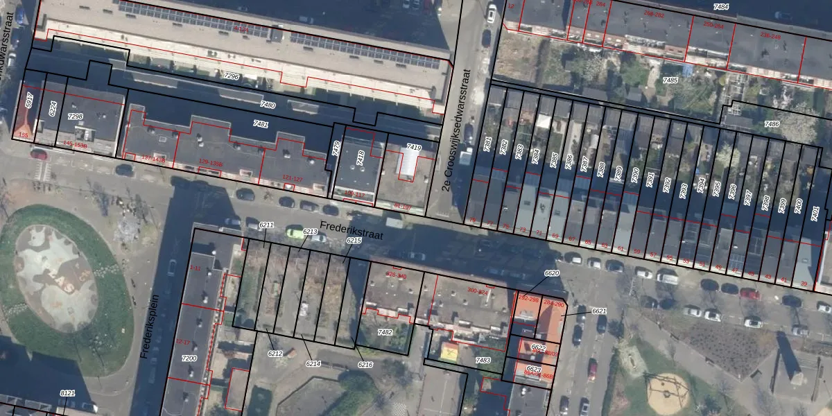 Het perceel waarop Frederikstraat 97 staat heeft een oppervlakte van 227 m². Dit is een middelgroot perceel. De perceeloppervlakte wordt geregistreerd door het Kadaster. Gedetailleerde informatie over de maten van dit perceel kunt u vinden in het rapport Kadastrale kaart met maatvoering van Frederikstraat 97.