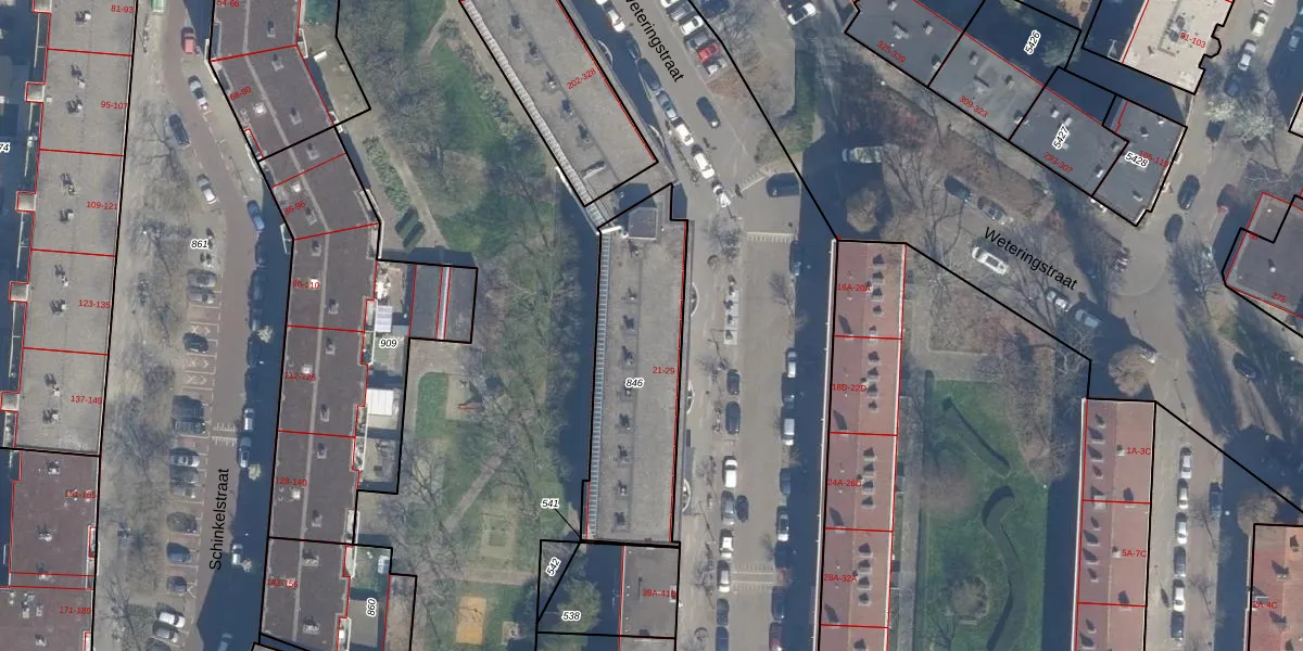 Het adres is gelegen op perceel 846 in de sectie AE en de kadastrale gemeente Rotterdam. De kadastrale aanduiding is aldus RTD04-AE-846. Het perceel is kleiner dan gemiddeld in Rotterdam. Het perceel is 690 m² groot, terwijl het gemiddelde ligt op 1239,97 m². Het kleinste perceel in de kadastrale gemeente is 0 m² groot. De grootste perceeloppervlakte is 17,3 ha. Er zijn 60 adressen aanwezig op het perceel. De huidige grenzen van het perceel zijn digitaal in de Basisregistratie Kadaster (BRK) geregistreerd op 24-01-2003.