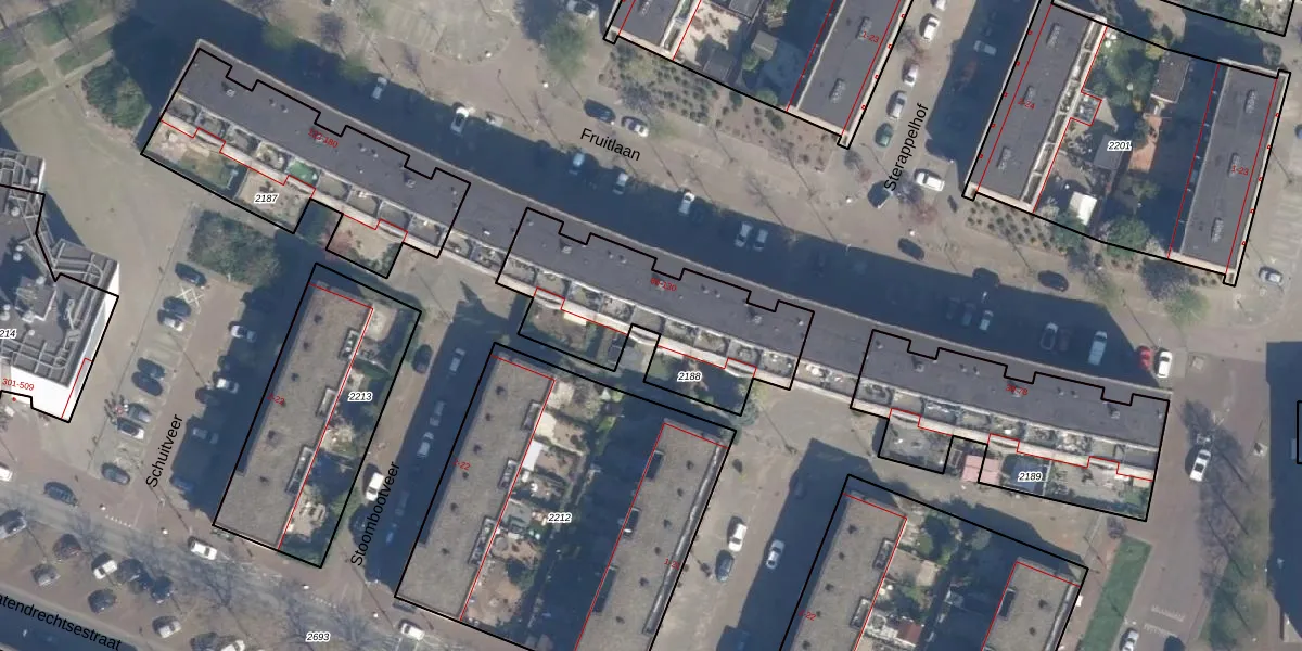 Fruitlaan 110 is gelegen op kadastraal perceel RTD05P2188. Deze kadastrale aanduiding is uniek en wordt gebruikt door het Kadaster om eigendomsrechten en andere zakelijke rechten vast te leggen. Het perceel maakt onderdeel uit van de kadastrale gemeente Rotterdam.