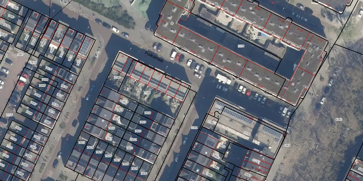 Het perceel waarop Fuikstraat 18 staat heeft een oppervlakte van 688 m². Dit is een groot perceel. De perceeloppervlakte wordt geregistreerd door het Kadaster. Gedetailleerde informatie over de maten van dit perceel kunt u vinden in het rapport Kadastrale kaart met maatvoering van Fuikstraat 18.