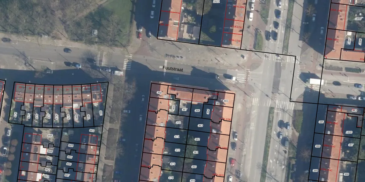Fuutstraat 6-B is gelegen op kadastraal perceel CLS00I367. Deze kadastrale aanduiding is uniek en wordt gebruikt door het Kadaster om eigendomsrechten en andere zakelijke rechten vast te leggen. Het perceel maakt onderdeel uit van de kadastrale gemeente Charlois.