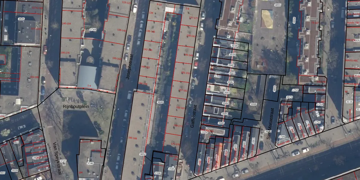 Gaffelstraat 157 is gelegen op kadastraal perceel DHV00D3848. Deze kadastrale aanduiding is uniek en wordt gebruikt door het Kadaster om eigendomsrechten en andere zakelijke rechten vast te leggen. Het perceel maakt onderdeel uit van de kadastrale gemeente Delfshaven.