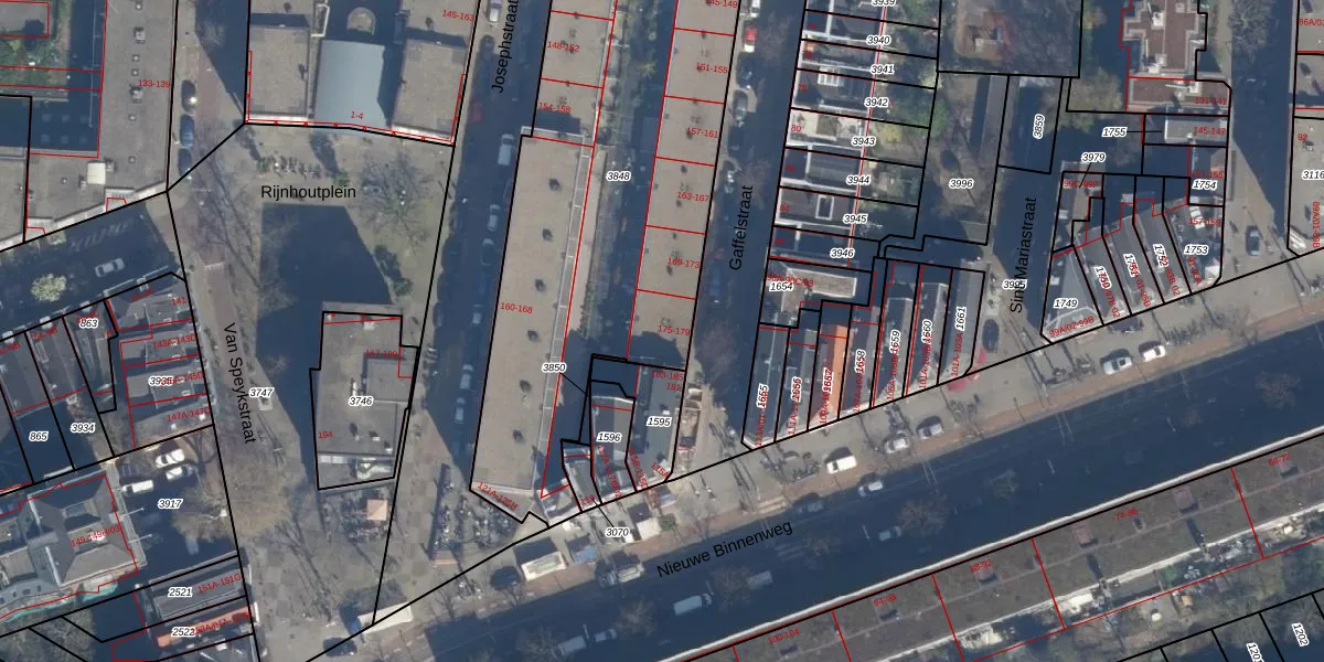 Gaffelstraat 175 is gelegen op kadastraal perceel DHV00D3848. Deze kadastrale aanduiding is uniek en wordt gebruikt door het Kadaster om eigendomsrechten en andere zakelijke rechten vast te leggen. Het perceel maakt onderdeel uit van de kadastrale gemeente Delfshaven.