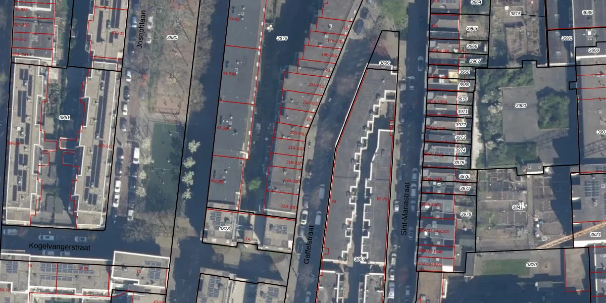 Het perceel waarop Gaffelstraat 31-C staat heeft een oppervlakte van 2752 m². Dit is een zeer groot perceel. De perceeloppervlakte wordt geregistreerd door het Kadaster. Gedetailleerde informatie over de maten van dit perceel kunt u vinden in het rapport Kadastrale kaart met maatvoering van Gaffelstraat 31-C.