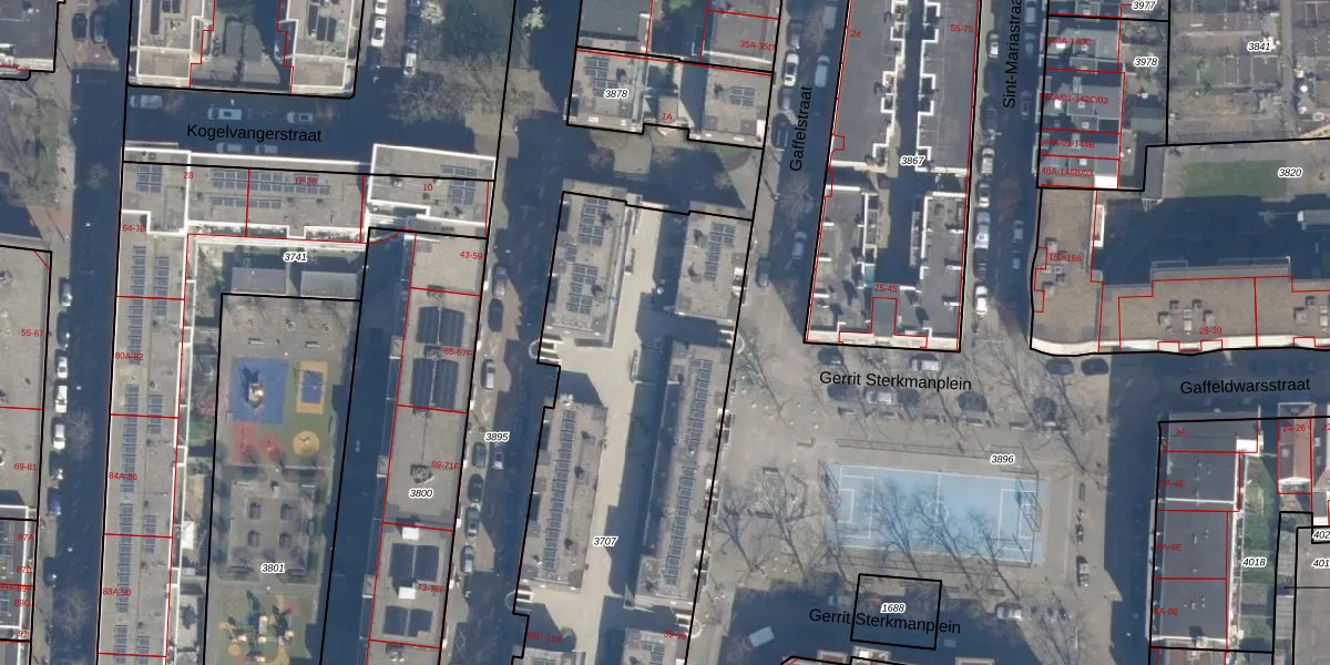 Het perceel waarop Gaffelstraat 49 staat heeft een oppervlakte van 3076 m². Dit is een zeer groot perceel. De perceeloppervlakte wordt geregistreerd door het Kadaster. Gedetailleerde informatie over de maten van dit perceel kunt u vinden in het rapport Kadastrale kaart met maatvoering van Gaffelstraat 49.