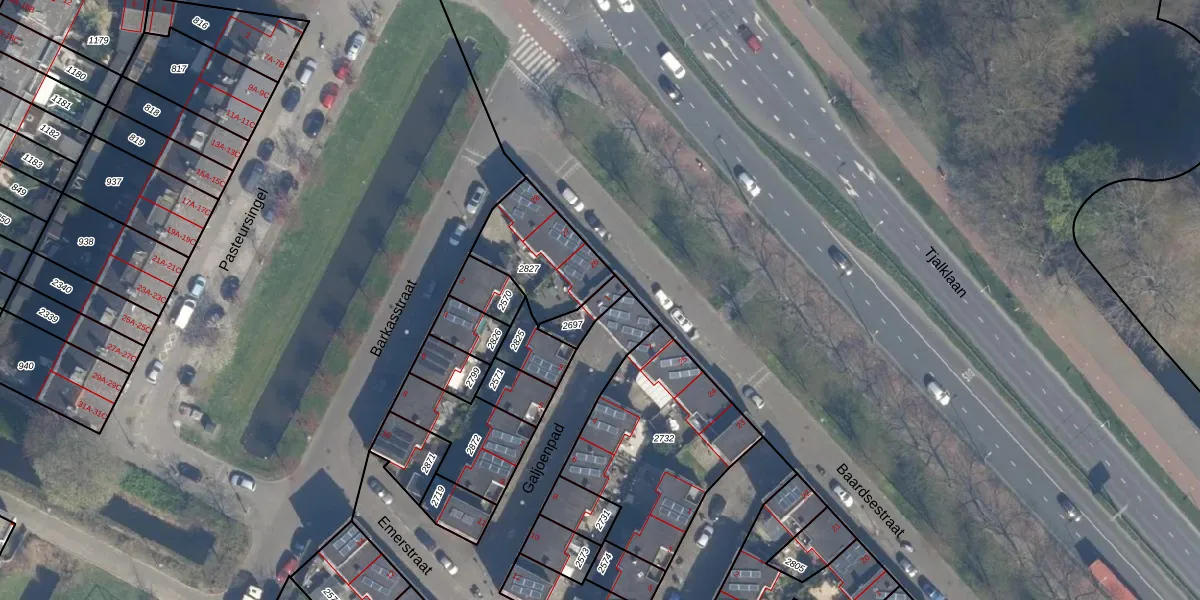 Gebruik de zoekbalk of klik op een perceel voor informatie over de adressen binnen dit perceel.