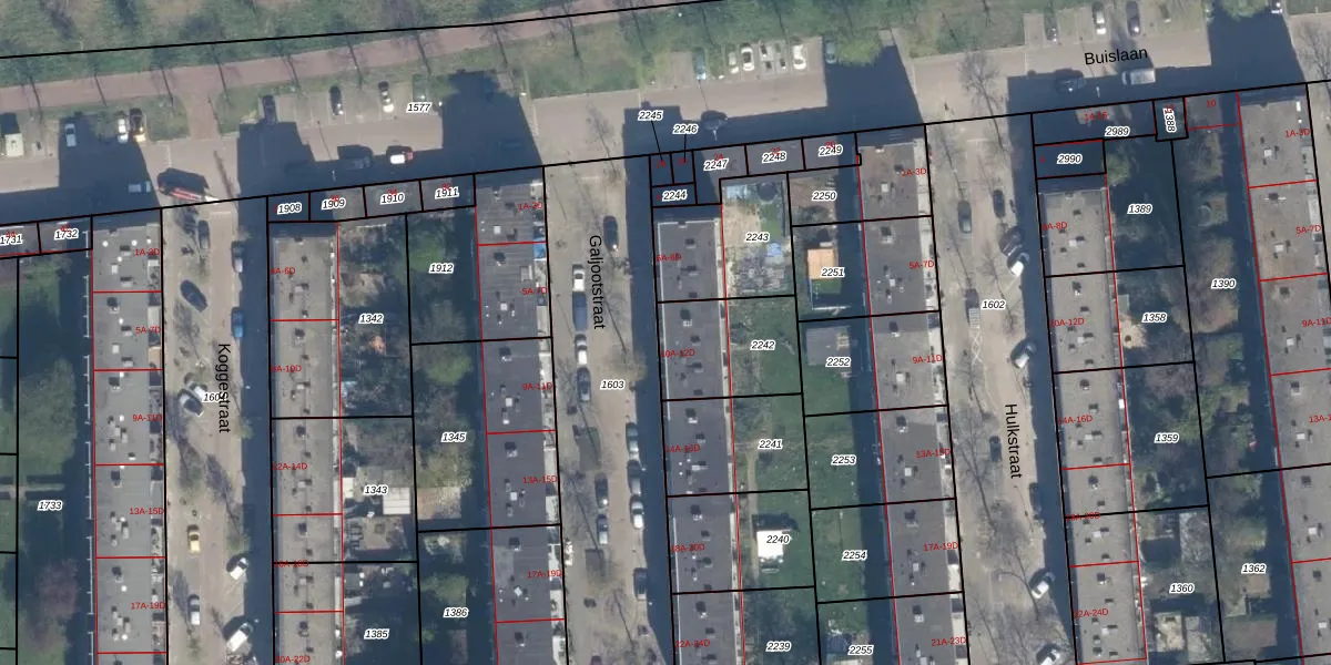 Het perceel waarop Galjootstraat 10-C staat heeft een oppervlakte van 313 m². Dit is een groot perceel. De perceeloppervlakte wordt geregistreerd door het Kadaster. Gedetailleerde informatie over de maten van dit perceel kunt u vinden in het rapport Kadastrale kaart met maatvoering van Galjootstraat 10-C.