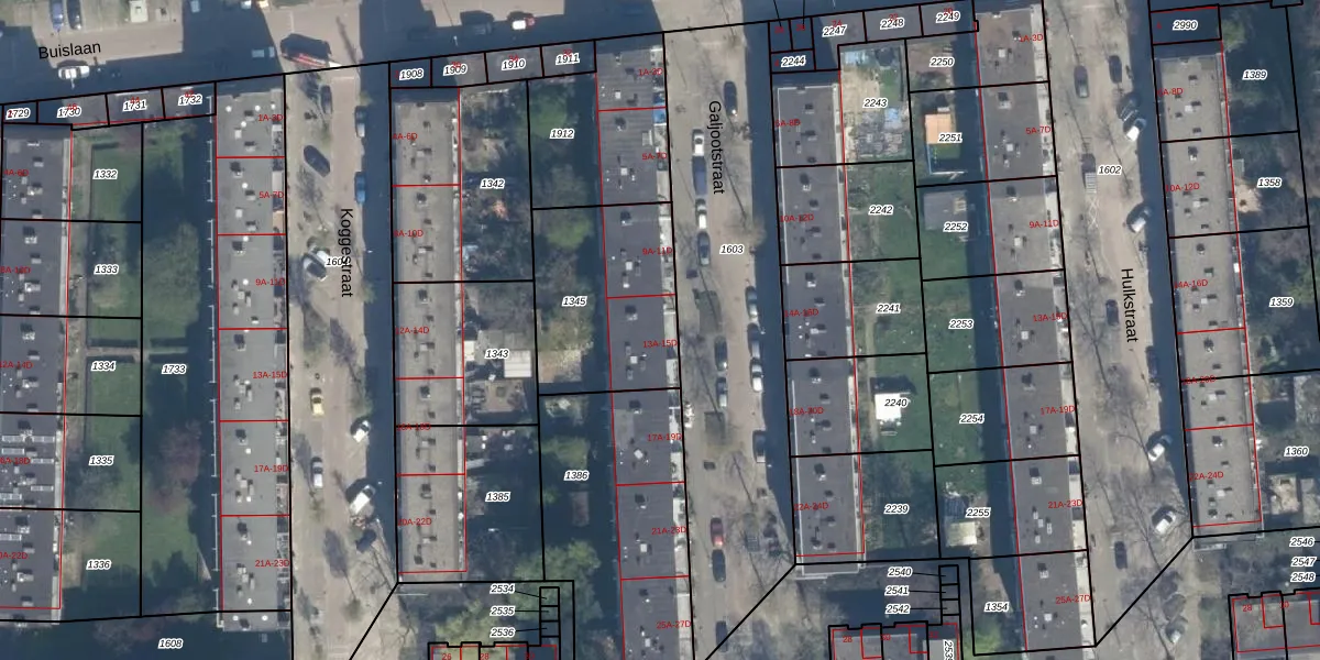 Het perceel waarop Galjootstraat 13-B staat heeft een oppervlakte van 613 m². Dit is een groot perceel. De perceeloppervlakte wordt geregistreerd door het Kadaster. Gedetailleerde informatie over de maten van dit perceel kunt u vinden in het rapport Kadastrale kaart met maatvoering van Galjootstraat 13-B.