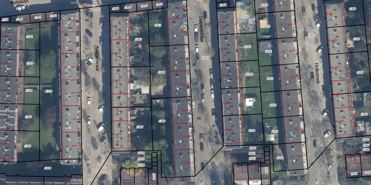 Het perceel waarop Galjootstraat 15-B staat heeft een oppervlakte van 613 m². Dit is een groot perceel. De perceeloppervlakte wordt geregistreerd door het Kadaster. Gedetailleerde informatie over de maten van dit perceel kunt u vinden in het rapport Kadastrale kaart met maatvoering van Galjootstraat 15-B.