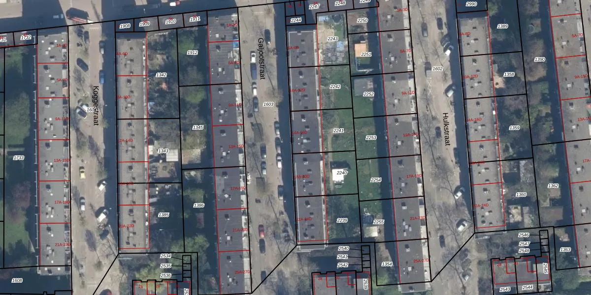 Het perceel waarop Galjootstraat 16-B staat heeft een oppervlakte van 316 m². Dit is een groot perceel. De perceeloppervlakte wordt geregistreerd door het Kadaster. Gedetailleerde informatie over de maten van dit perceel kunt u vinden in het rapport Kadastrale kaart met maatvoering van Galjootstraat 16-B.