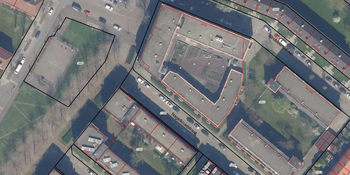 Het adres is gelegen op perceel 1912 in de sectie C en de kadastrale gemeente Schiebroek. De kadastrale aanduiding is aldus SBK01-C-1912. De gemiddelde perceeloppervlakte in de kadastrale gemeente Schiebroek is 1440,41 m². Dit perceel is met zijn 6595 m² dus groter dan gemiddeld. De grootste perceeloppervlakte in de kadastrale gemeente is 36,7 ha. De kleinste oppervlakte bedraagt 0 m². Er zijn 87 adressen aanwezig op het perceel. De huidige grenzen van het perceel zijn digitaal in de Basisregistratie Kadaster (BRK) geregistreerd op 02-07-2003.