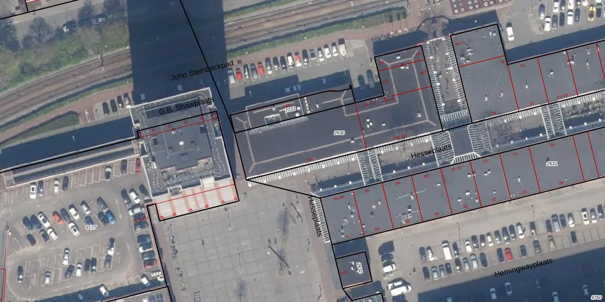 Het perceel waarop G.B. Shawplaats 101 staat heeft een oppervlakte van 1282 m². Dit is een zeer groot perceel. De perceeloppervlakte wordt geregistreerd door het Kadaster. Gedetailleerde informatie over de maten van dit perceel kunt u vinden in het rapport Kadastrale kaart met maatvoering van G.B. Shawplaats 101.