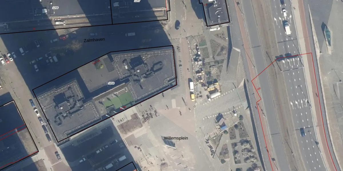 Het perceel waarop Gedempte Zalmhaven 305 staat heeft een oppervlakte van 2597 m². Dit is een zeer groot perceel. De perceeloppervlakte wordt geregistreerd door het Kadaster. Gedetailleerde informatie over de maten van dit perceel kunt u vinden in het rapport Kadastrale kaart met maatvoering van Gedempte Zalmhaven 305.