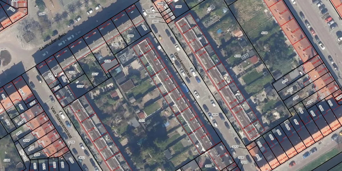 Geerkensstraat 12-B is gelegen op kadastraal perceel OVS00C3771. Deze kadastrale aanduiding is uniek en wordt gebruikt door het Kadaster om eigendomsrechten en andere zakelijke rechten vast te leggen. Het perceel maakt onderdeel uit van de kadastrale gemeente Overschie.
