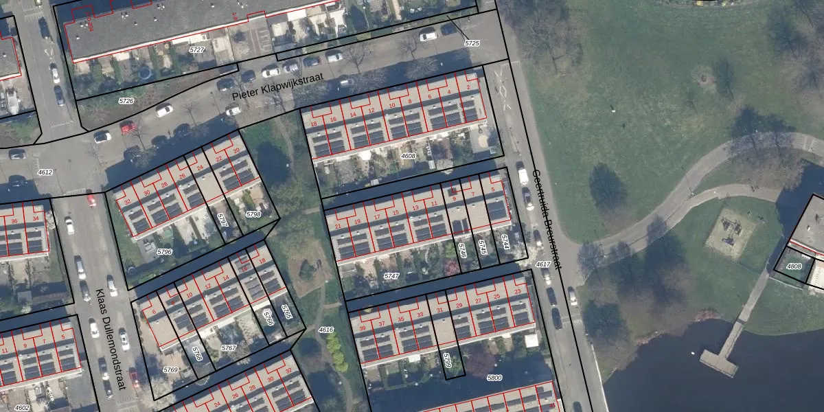 Geertruida Breurstraat 13 is gelegen op kadastraal perceel KLG00C5747. Deze kadastrale aanduiding is uniek en wordt gebruikt door het Kadaster om eigendomsrechten en andere zakelijke rechten vast te leggen. Het perceel maakt onderdeel uit van de kadastrale gemeente Kralingen.