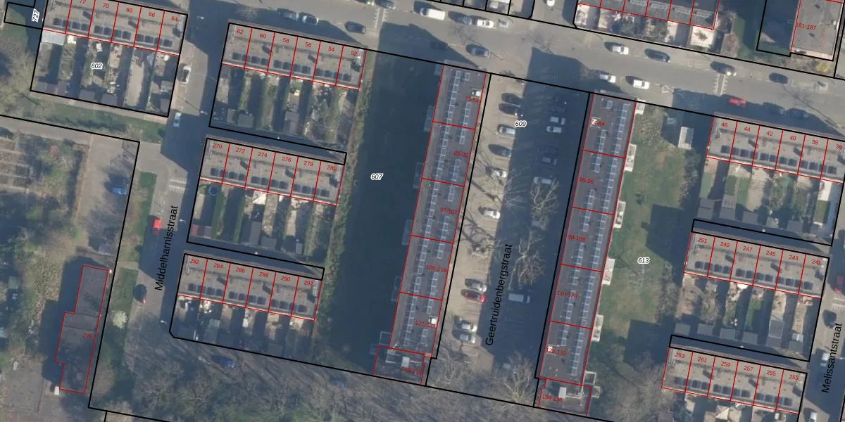 Geertruidenbergstraat 101 is gelegen op kadastraal perceel CLS00L607. Deze kadastrale aanduiding is uniek en wordt gebruikt door het Kadaster om eigendomsrechten en andere zakelijke rechten vast te leggen. Het perceel maakt onderdeel uit van de kadastrale gemeente Charlois.