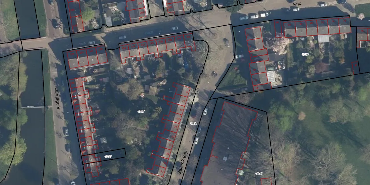 Het perceel waarop Geitenkamp 9 staat heeft een oppervlakte van 5030 m². Dit is een zeer groot perceel. De perceeloppervlakte wordt geregistreerd door het Kadaster. Gedetailleerde informatie over de maten van dit perceel kunt u vinden in het rapport Kadastrale kaart met maatvoering van Geitenkamp 9.